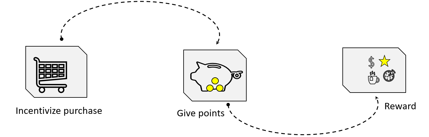 Let’s see how a loyalty program typically works, as shown in the following diagram.