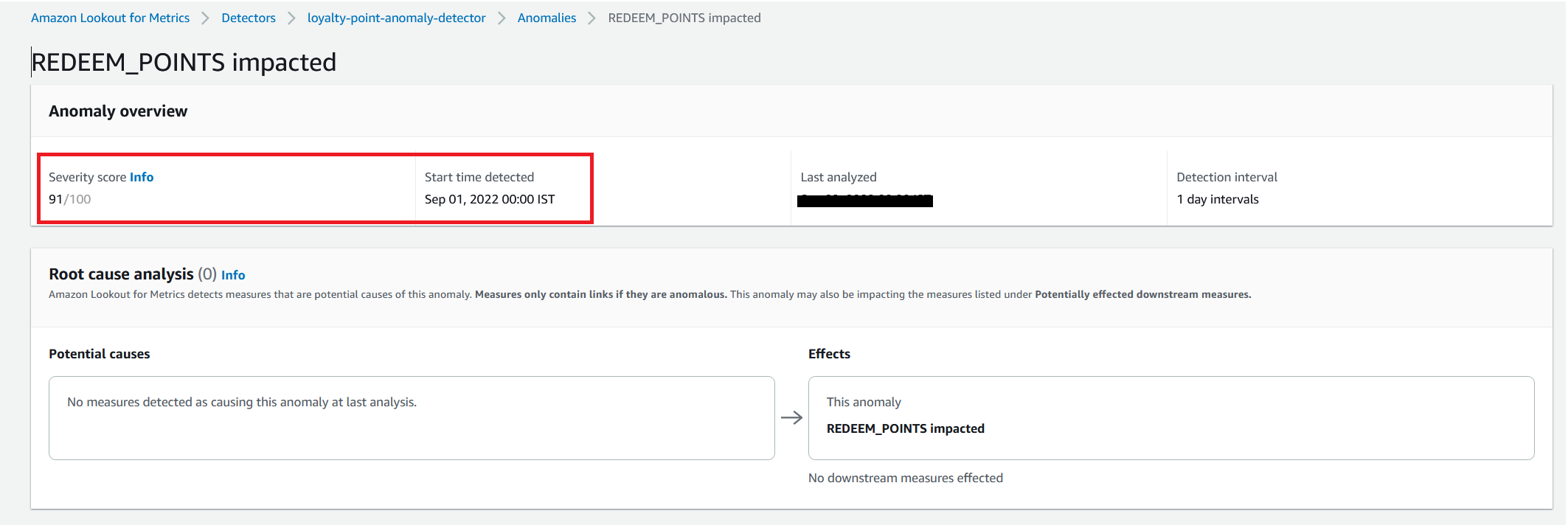 - On the Lookout for Metrics console, navigate to your detector.