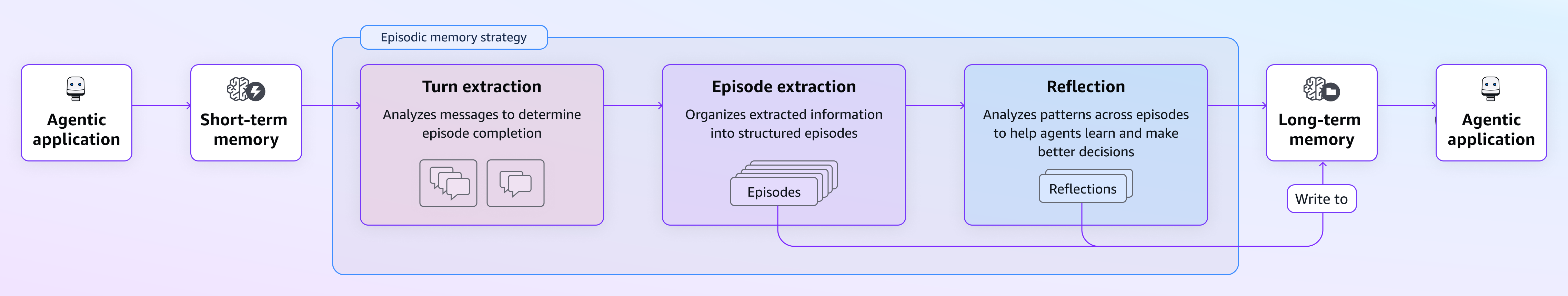 In the next section, we describe how to build an AgentCore episodic memory strategy, covering its extraction, storage, retrieval, and reflection pipeline and how these components work together to help transform experience into adaptive intelligence.
