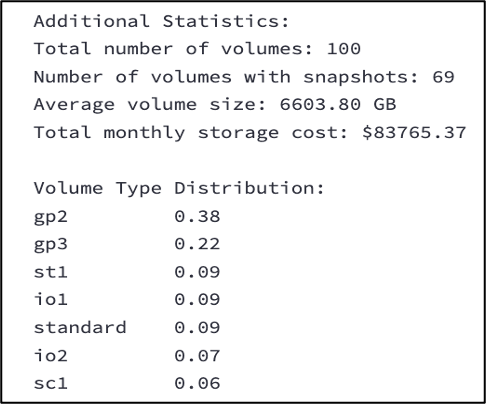 - Criteria – Represent multiple AWS Regions, with appropriate volume types. Correlate snapshot ages with volume ages.