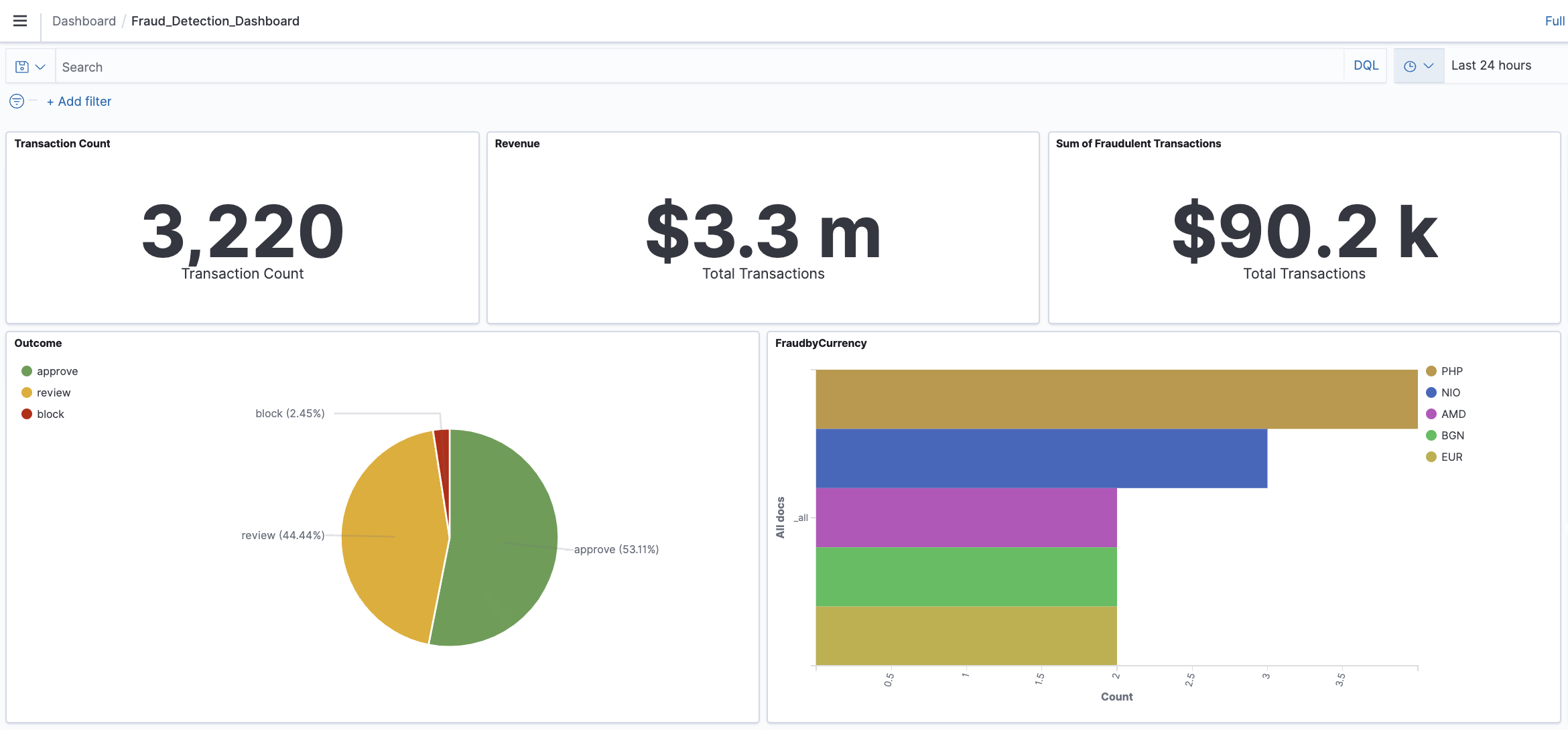 - After logging in to OpenSearch you will find a new sample fraud detection dashboard, which is updated in real time.