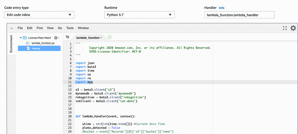 License-Plate-Match-cloud. - For Runtime, choose Python 3.7.