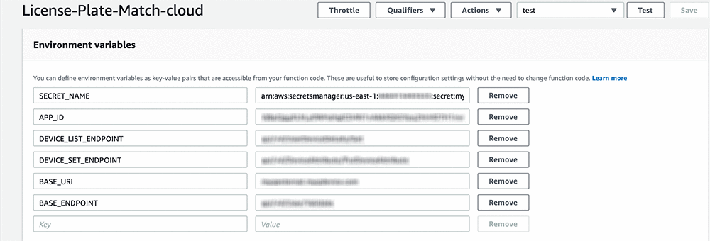 Create a new (cloud) Lambda function on the AWS side to call the Amazon Rekognition API to detect the license plate number and verify it with the DynamoDB table. If it finds a match, it calls the third-party API to open the garage door. Complete the following steps: