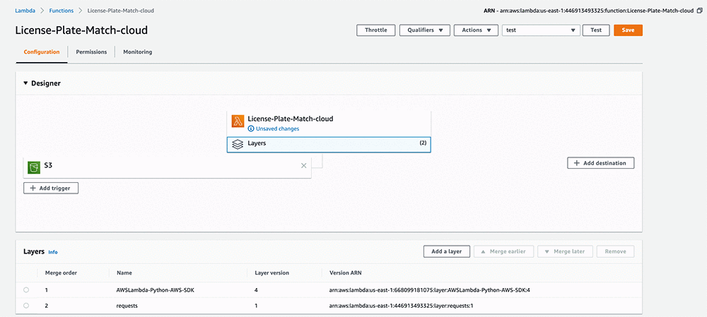 After you create the layer, add the layer to the License-Plate-Match-cloud function.