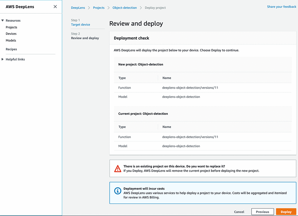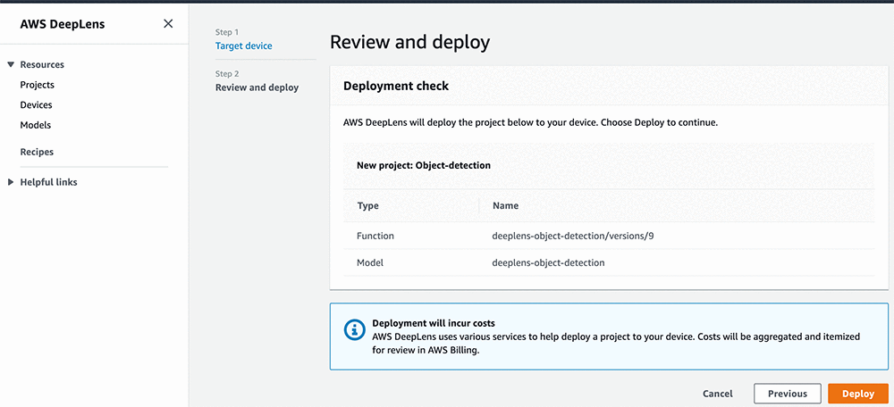 The project takes up to a few minutes to deploy to AWS DeepLens.