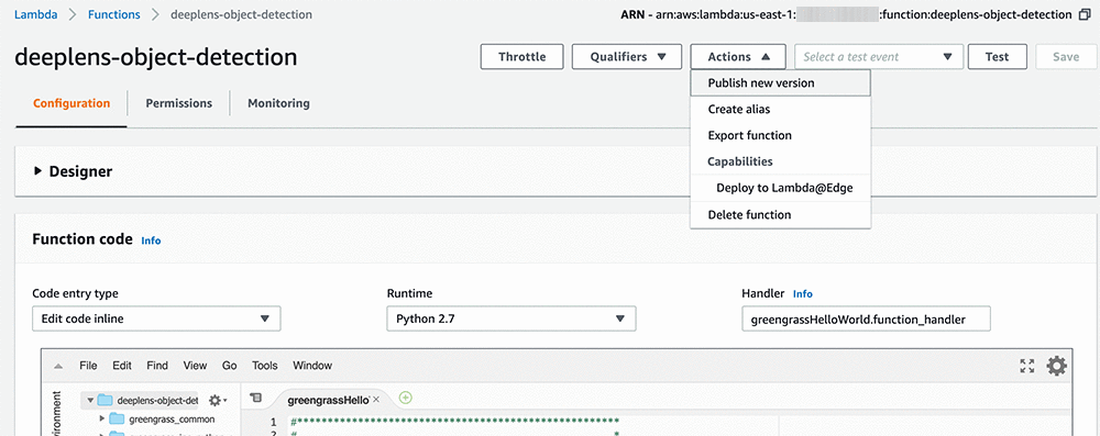 deeplens_lambdacode from the GitHub repo. - Replace bucket_name with your bucket name.