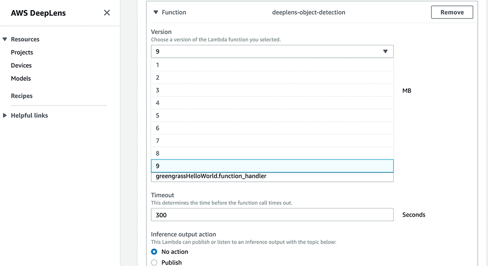 After you deploy the sample object detection project into AWS DeepLens, you need to change the inference (edge) Lambda function to upload image frames to Amazon S3. Complete the following steps: