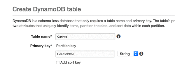 In this step, you populate your license plate number to an DynamoDB table. You can either do this step manually using aws-cli from the GitHub repo or you can have a simple web application on Amazon S3 that uses Amazon API Gateway and Lambda to insert the item in the table. This post uses aws-cli to insert the item. You can complete this step from your local computer, but you need to have AWS CLI installed and configured in your machine. For more information, see What Is the AWS Command Line Interface?