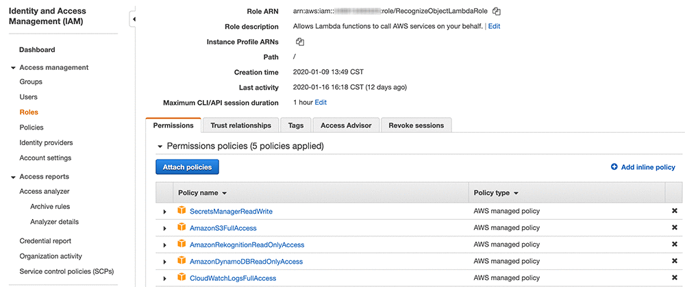 - On the IAM console, add permissions for AmazonS3FullAccess to