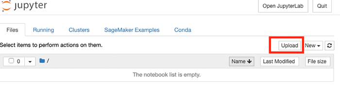 Upload the aws-deeplens-custom-trash-detector.ipynb file you downloaded earlier.