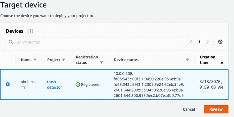 In your AWS DeepLens console’s Projects page, select the project you want to deploy and then select Deploy to device.