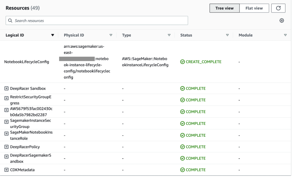 You can run also some unit tests before deploying the stack to verify that you accidently didn’t remove any required resources. The unit tests are located in DeepRacer/test/deep_racer.test.ts and can be run with the following code: