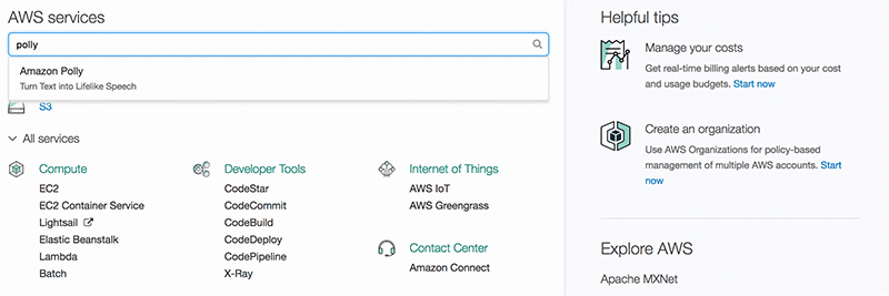 1. Type Polly in the search box.