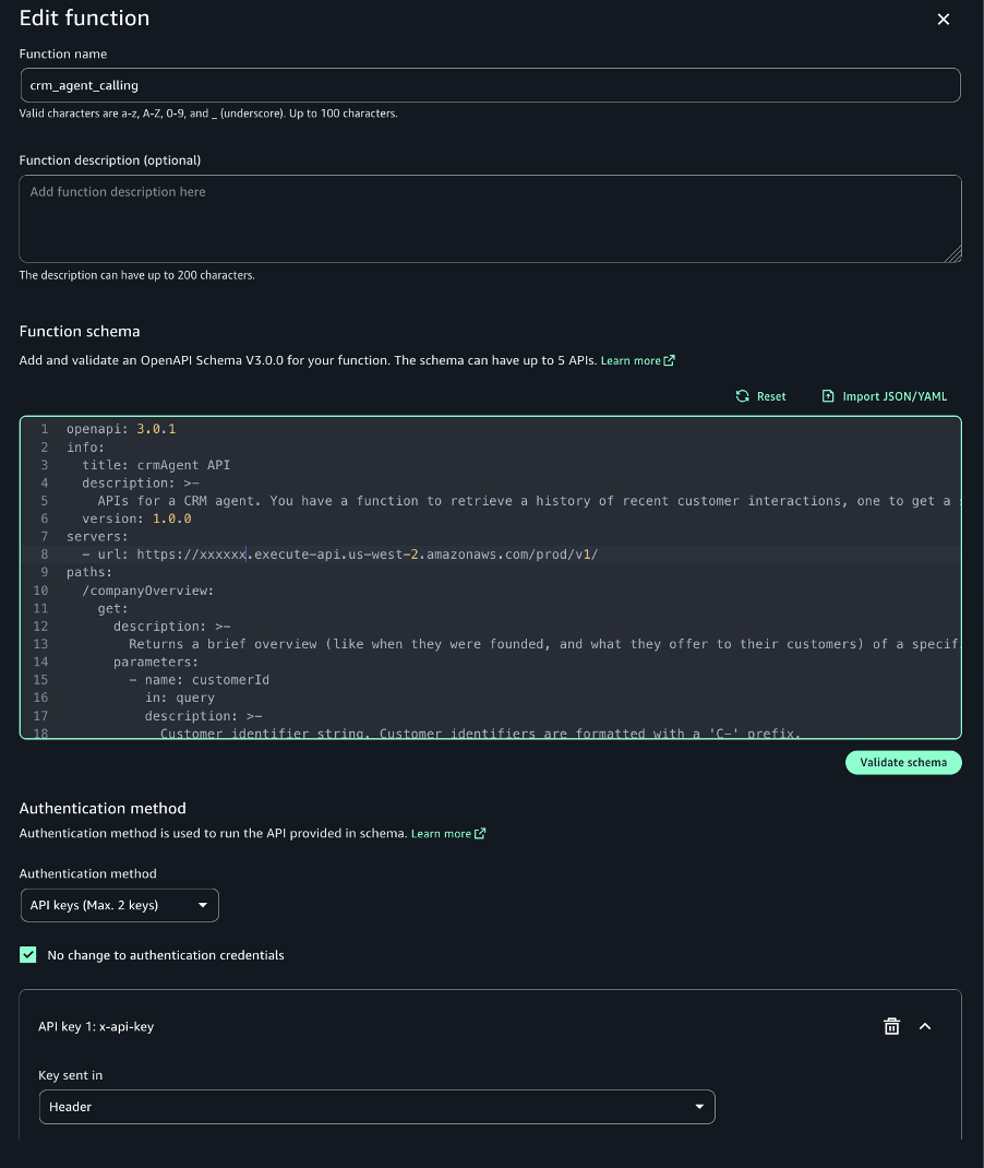 crm_agent_calling. - For Function schema, use the OpenAPI definition from the GitHub repo.
