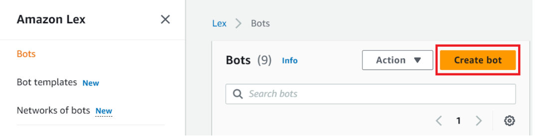 - On the Amazon Lex console, choose Bots in the navigation pane.