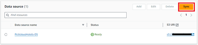 - Choose Sync to sync to chunk the documents, calculate the embeddings, and store them in the vector store.