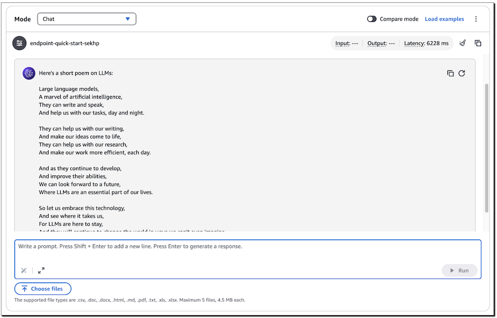 You can quickly test the model in the playground through the UI. However, to invoke the deployed model programmatically with any Amazon Bedrock APIs, you need to get the endpoint ARN.