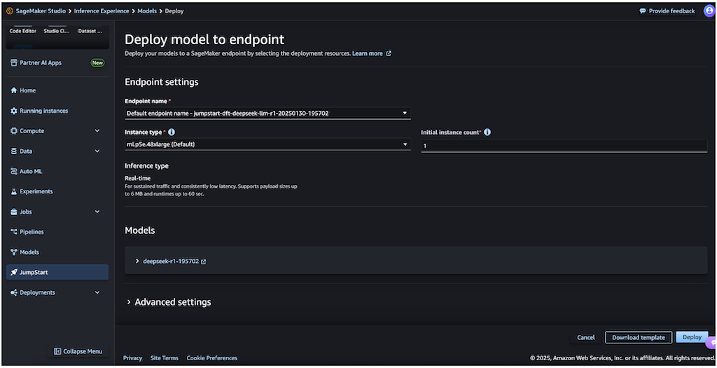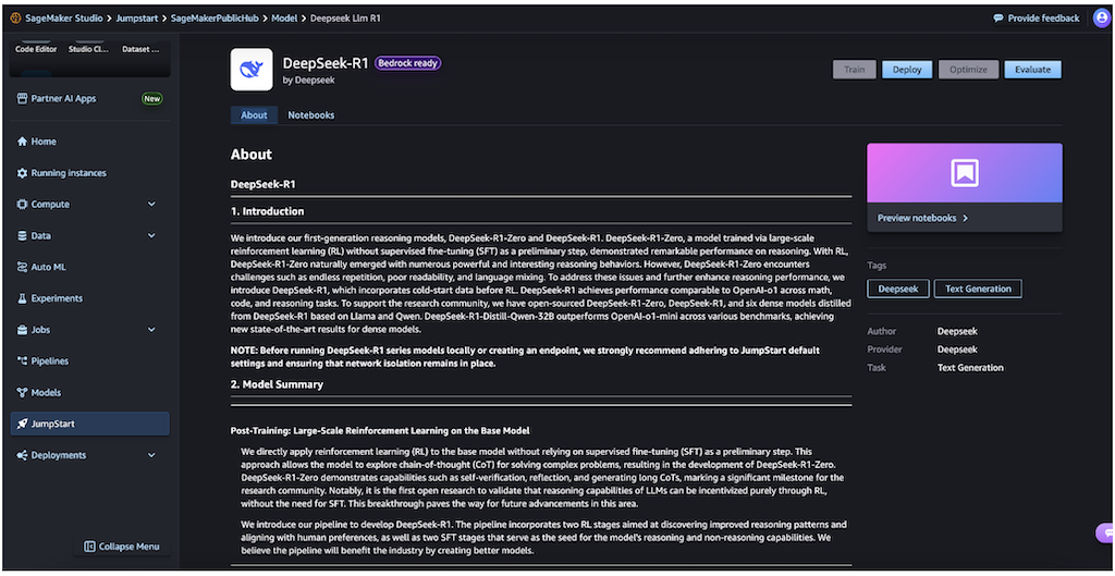 Deploying DeepSeek-R1 model through SageMaker JumpStart offers two convenient approaches: using the intuitive SageMaker JumpStart UI or implementing programmatically through the SageMaker Python SDK. Let’s explore both methods to help you choose the approach that best suits your needs.