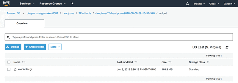 After the frozen protobuff file, frozen_mode.pb is generated, we are going to put it back into the output folder inside the TFartifacts folder of the S3 bucket.