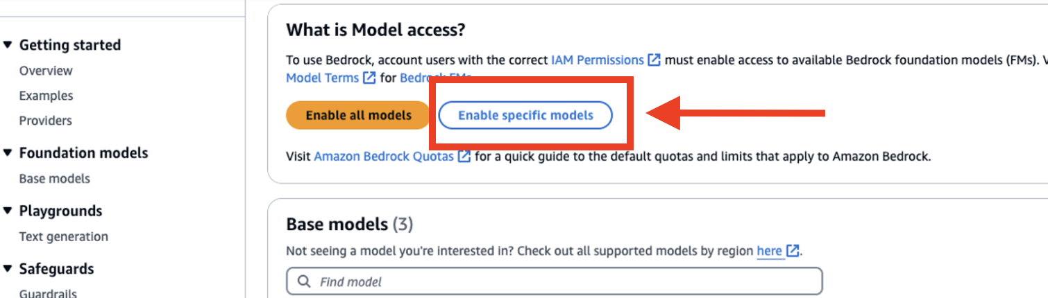 - Choose Model access from the navigation pane under Bedrock Configurations.