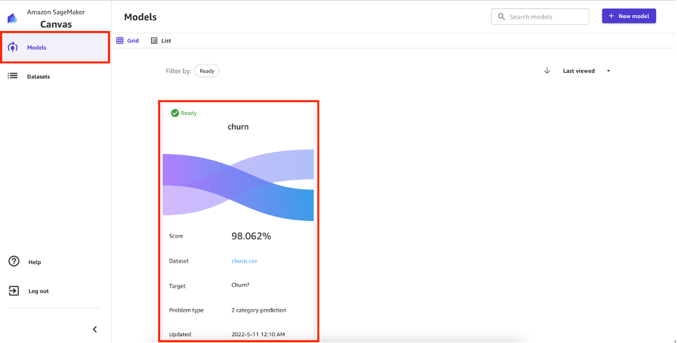 Building ML models can be a tricky process because it requires an expert team to manage the data preparation and ML model training. However, with Canvas, you can do that without any special knowledge and with zero lines of code. For more information, check out Predict customer churn with no-code machine learning using Amazon SageMaker Canvas.