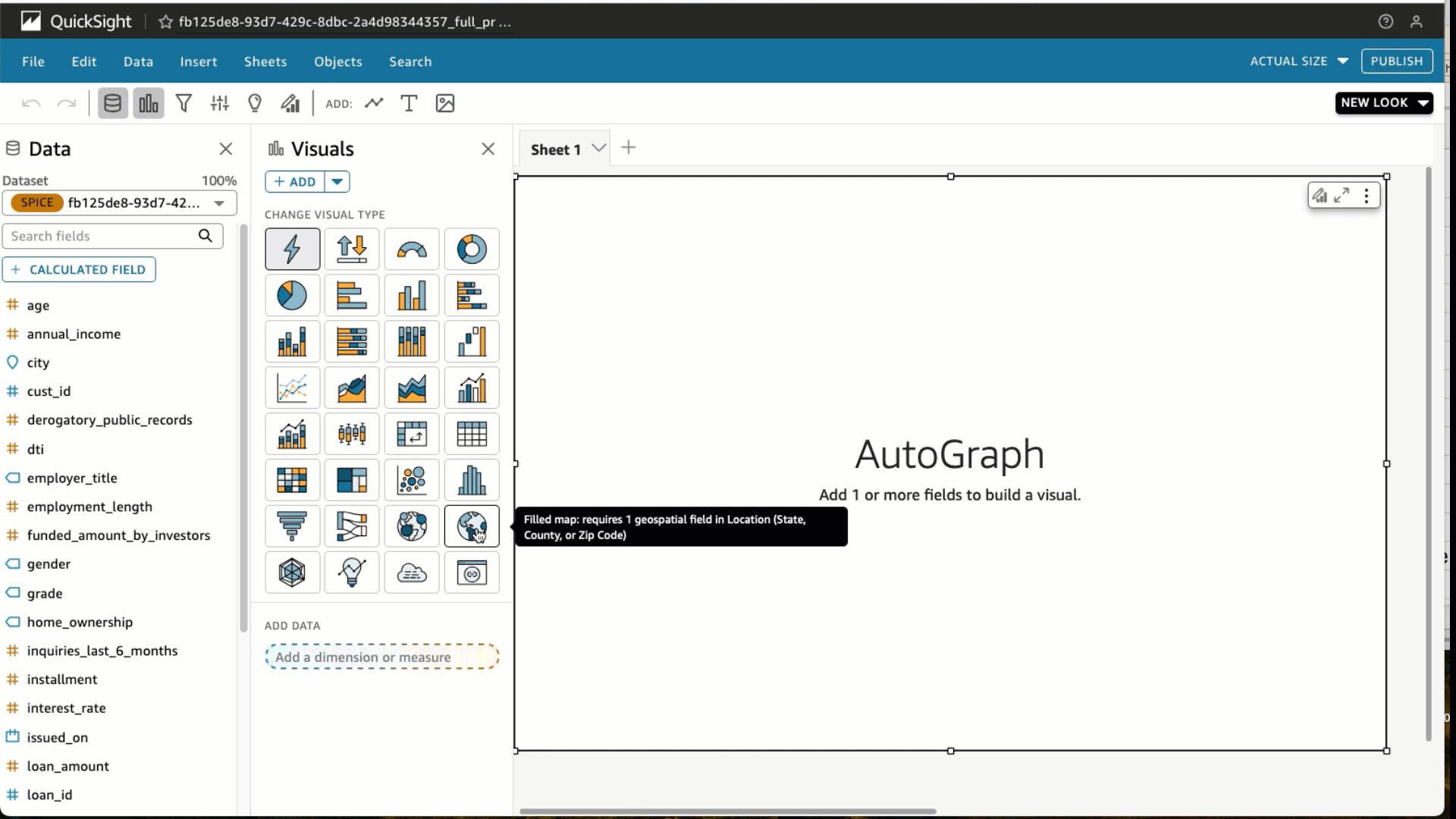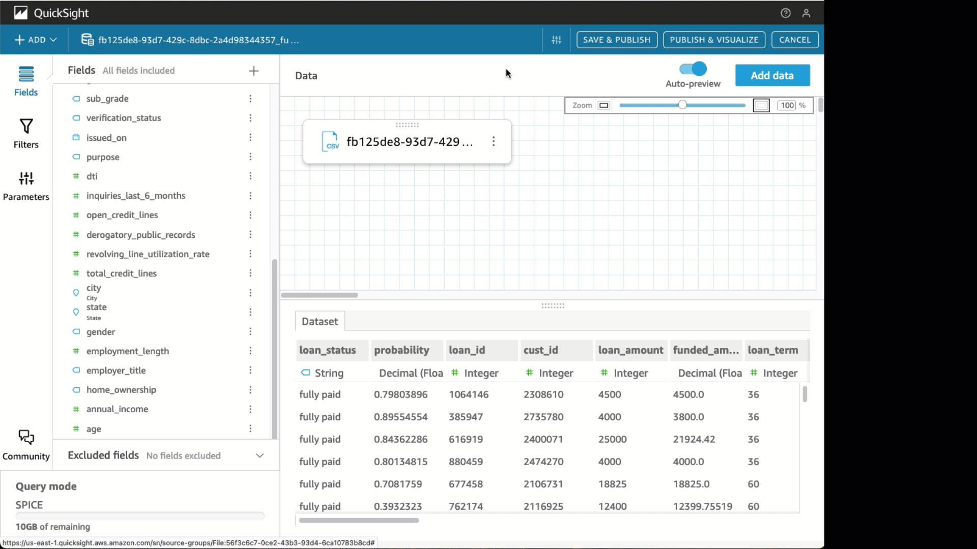 - Choose Filter and add a filter for loan_status to include fully paid loans only. Choose Apply.