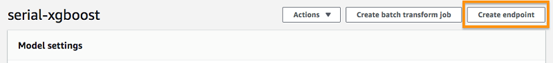 You can now find your models underneath Inference, Models in the Amazon SageMaker console. Select the pipeline-xgboost model from the list to bring up the model details. Now choose the Create endpoint button.