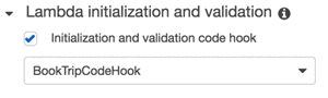 Now, you incorporate the Lambda function into the Amazon Lex bot. You follow the instructions to associate the new function as the Initialization and data validation code hook and the Fulfillment code hook for both the BookCar and BookHotel intents: