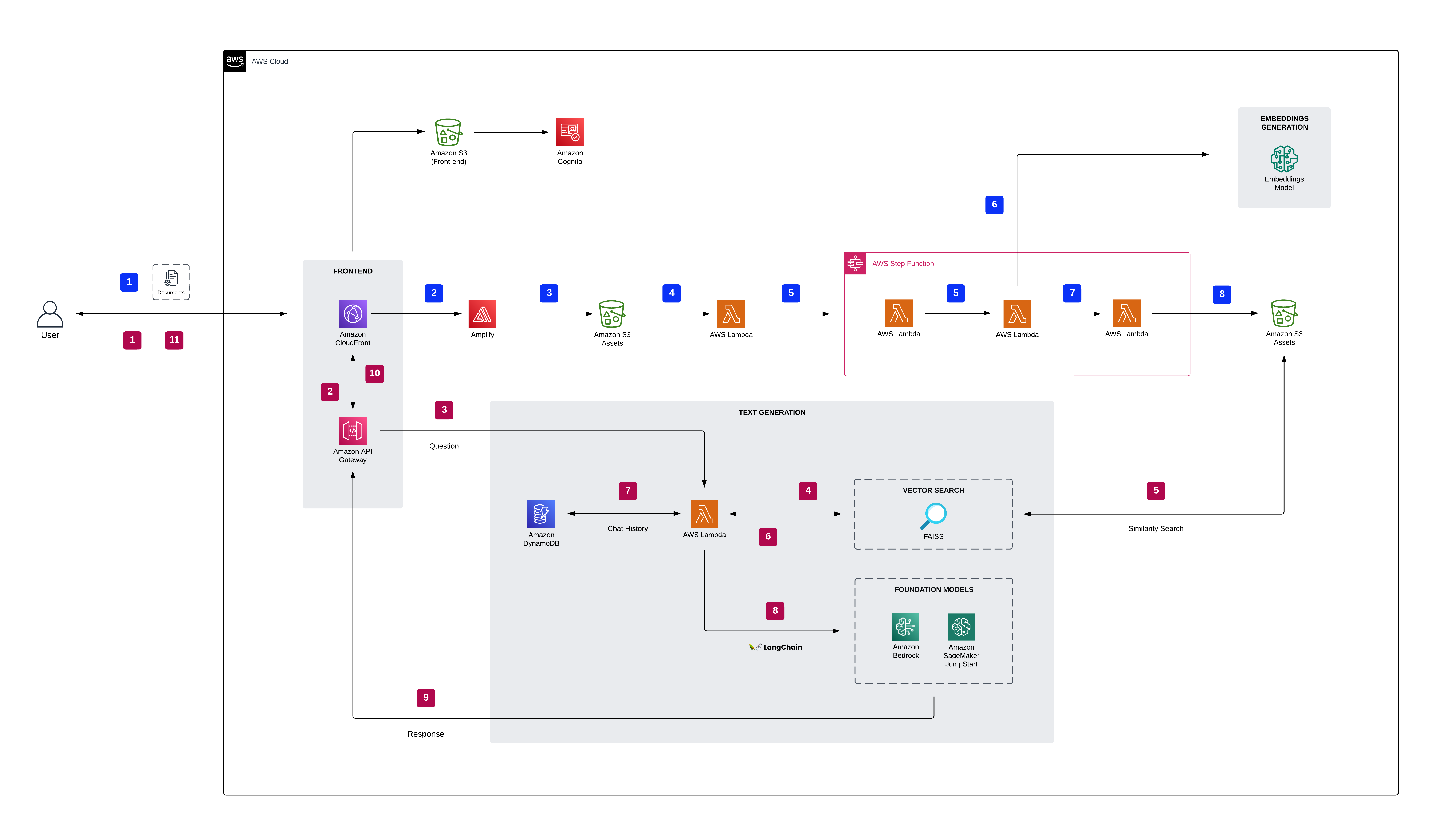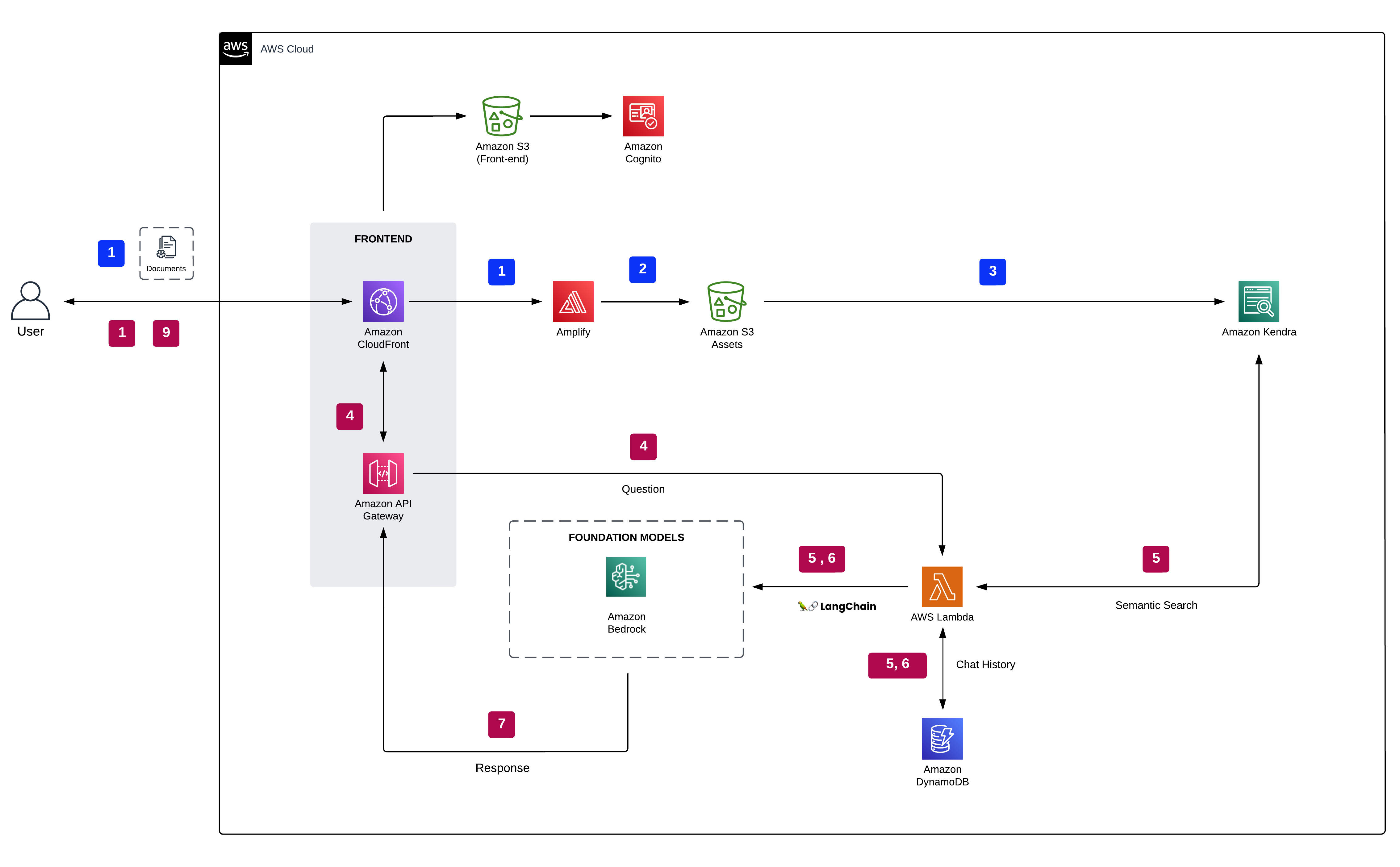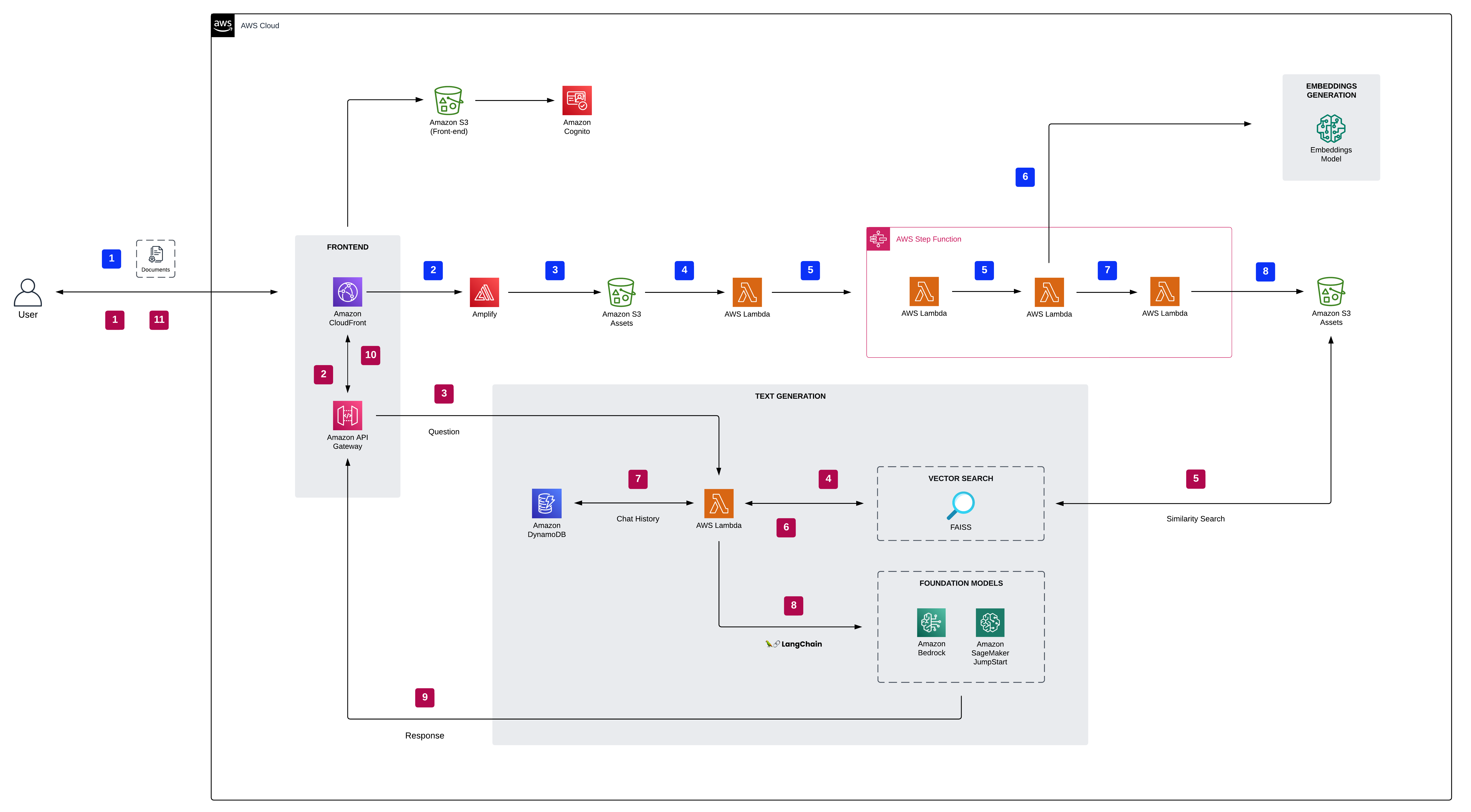 - The user uploads one or more documents into Amazon S3.