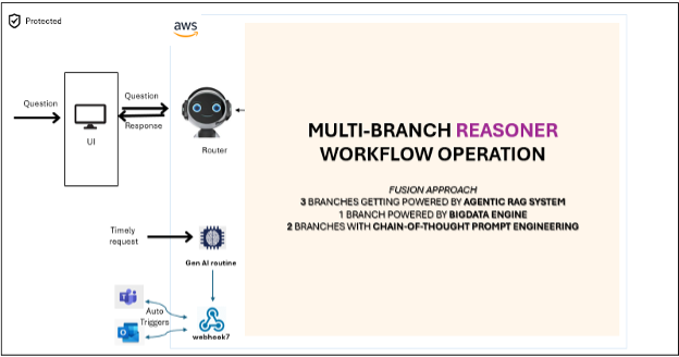 - The question asked is picked up by the primary AI agent, which classifies the complexity of the question and decides which agent to be called for the multistep reasoning with help of different AWS services.