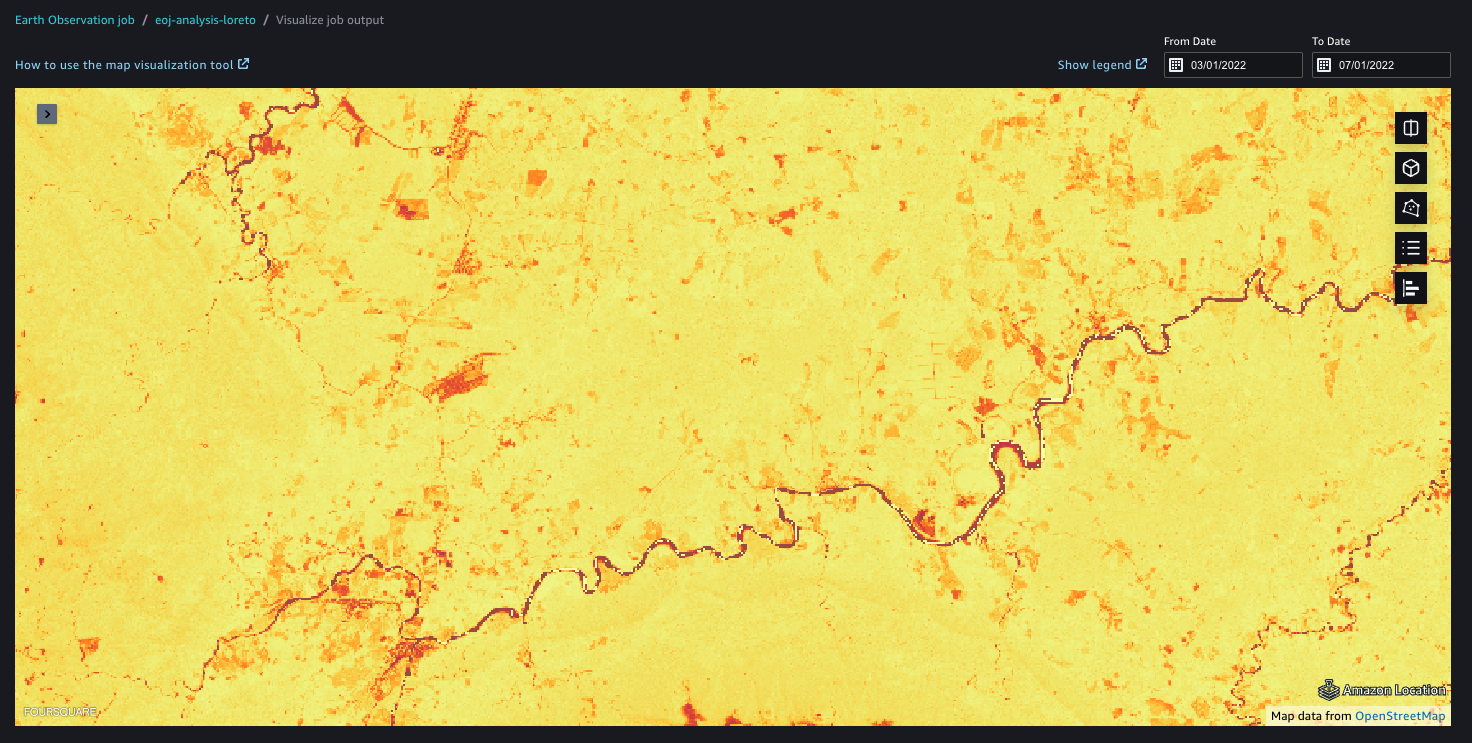 Discover the potential of integrating Earth observation data into your healthcare initiatives by exploring SageMaker geospatial features. For more information, refer to Amazon SageMaker geospatial capabilities, or engage with additional examples to get hands-on experience.