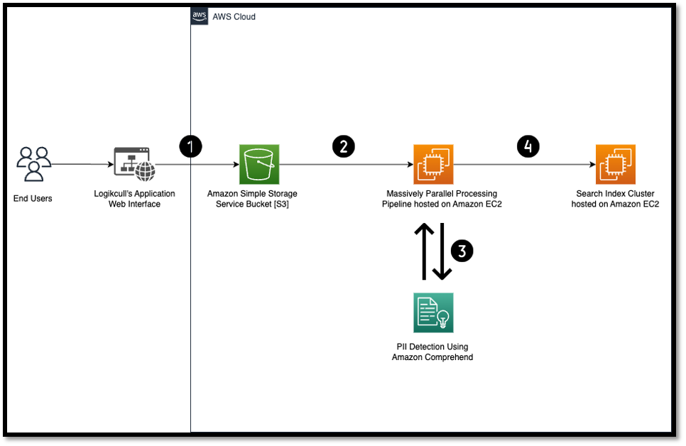 - Logikcull stores these project folders securely inside an Amazon Simple Storage Service (Amazon S3) bucket. The files then pass through Logikcull’s massively parallel processing pipeline hosted on Amazon Elastic Compute Cloud (Amazon EC2), which processes the files, extracts the metadata, and generates artifacts in text format for data review. Logikcull’s processing pipeline supports text extraction for a wide variety of forms and files, including audio and video files.