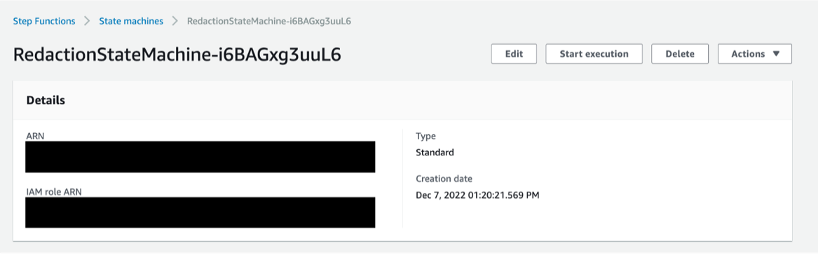 We will create an AWS Step Functions state machine, which orchestrates an Amazon Comprehend PII redaction job. Amazon Comprehend is a natural-language processing (NLP) service that uses machine learning to uncover valuable insights and connections in text, including the ability to detect and redact PII data.