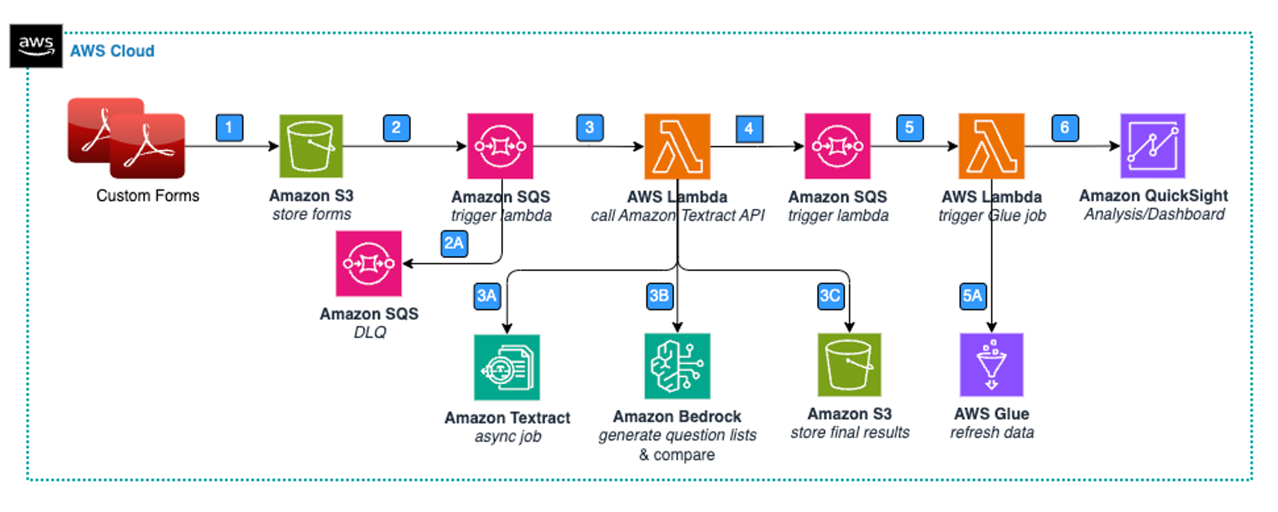 - Amazon Simple Queue Service (Amazon SQS) is used as the message queue. Whenever a new form is loaded, an event is invoked in Amazon SQS.