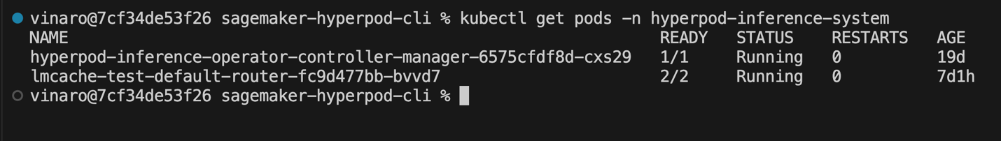 - Verify that the inference operator is up and running. The Inference add-on is installed as a default option when you create the HyperPod cluster from the console. If you want to use an existing EKS cluster, see Setting up your HyperPod clusters for model deployment to manually install the inference operator.