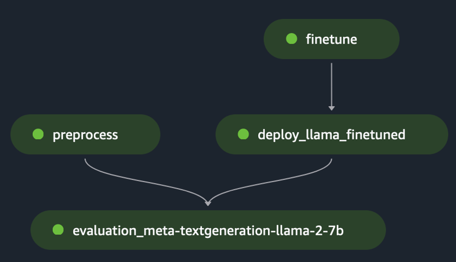 Following a similar approach and by using and tailoring the example in Fine-tune LLaMA 2 models on SageMaker JumpStart, we created the pipeline to evaluate a fine-tuned model, as shown in the following figure.