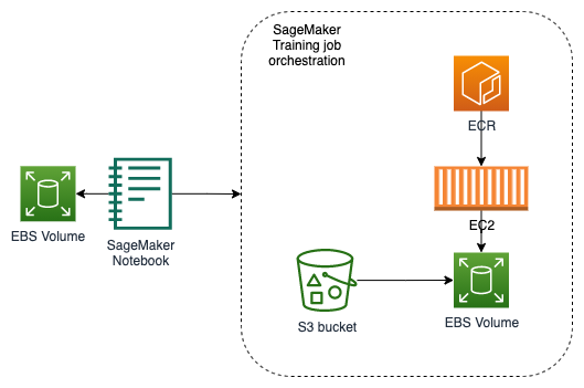 One benefit of using SageMaker is that from your notebook, with a few lines of code, you can launch your training job on the Amazon Elastic Compute Cloud (Amazon EC2) instance of your choice. SageMaker orchestrates the sync of data to the training instance, deploys and runs the Docker image on the instance, and runs your training script or serves your inference. It also shuts down the infrastructure when the training is finished so you’re only charged for the seconds that your training took to complete. The EC2 instance and Docker container are spun up automatically. There is no need for the ML engineer to configure it, except for a single line of code to specify the size of the instances and the number of instances you require.