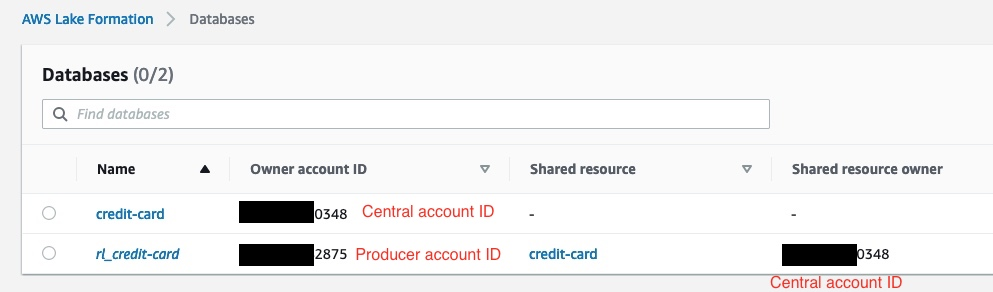 credit-card, which holds the tablecredit_card. - Allow S3 bucket access for the central account Lake Formation service role.