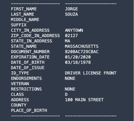 Now we run the detect_document_text() method on the sample image and obtain raw text extraction in the results.