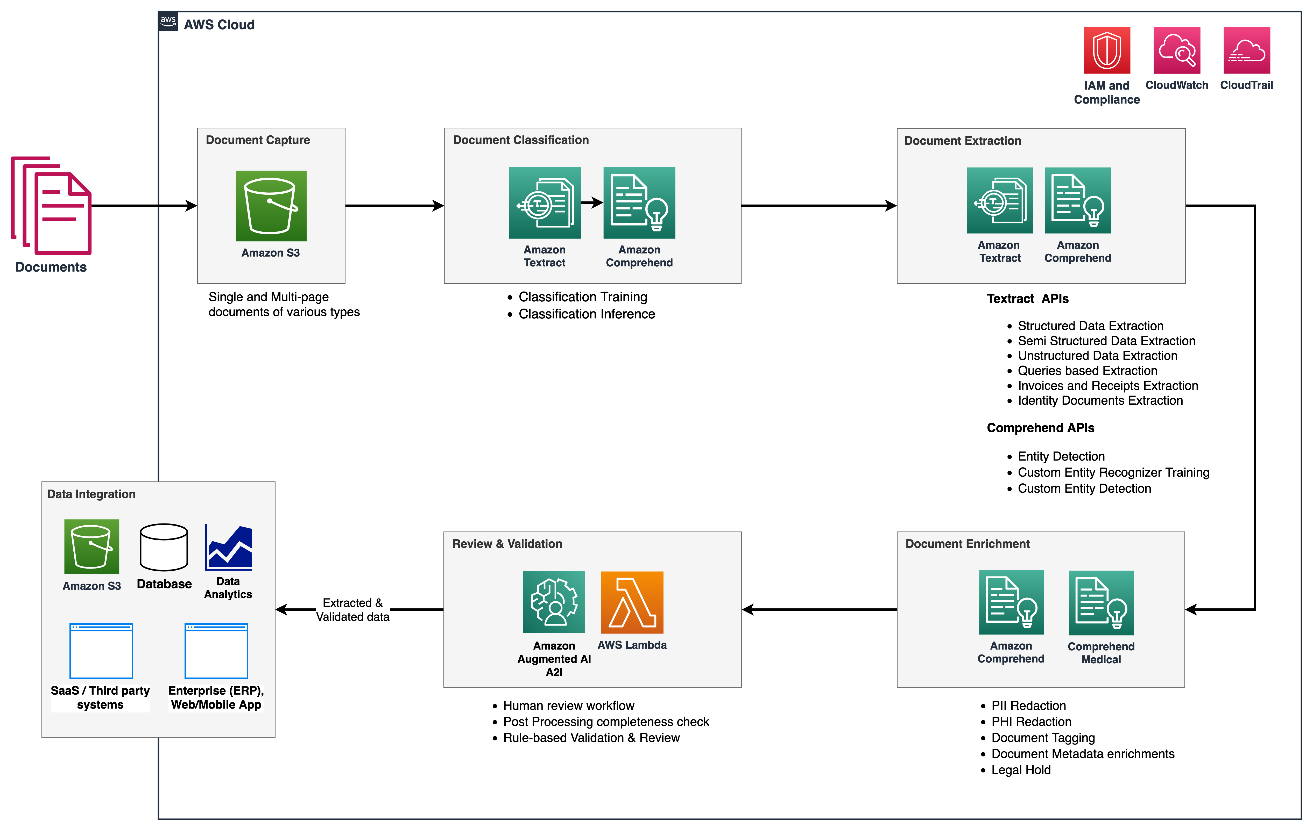 Organizations across industries such as healthcare, finance and lending, legal, retail, and manufacturing often have to deal with a lot of documents in their day-to-day business processes. These documents contain critical information that are key to making decisions on time in order to maintain the highest levels of customer satisfaction, faster customer onboarding, and lower customer churn. In most cases, documents are processed manually to extract information and insights, which is time-consuming, error-prone, expensive, and difficult to scale. There is limited automation available today to process and extract information from these documents. Intelligent document processing (IDP) with AWS artificial intelligence (AI) services helps automate information extraction from documents of different types and formats, quickly and with high accuracy, without the need for machine learning (ML) skills. Faster information extraction with high accuracy helps in making quality business decisions on time, while reducing overall costs.