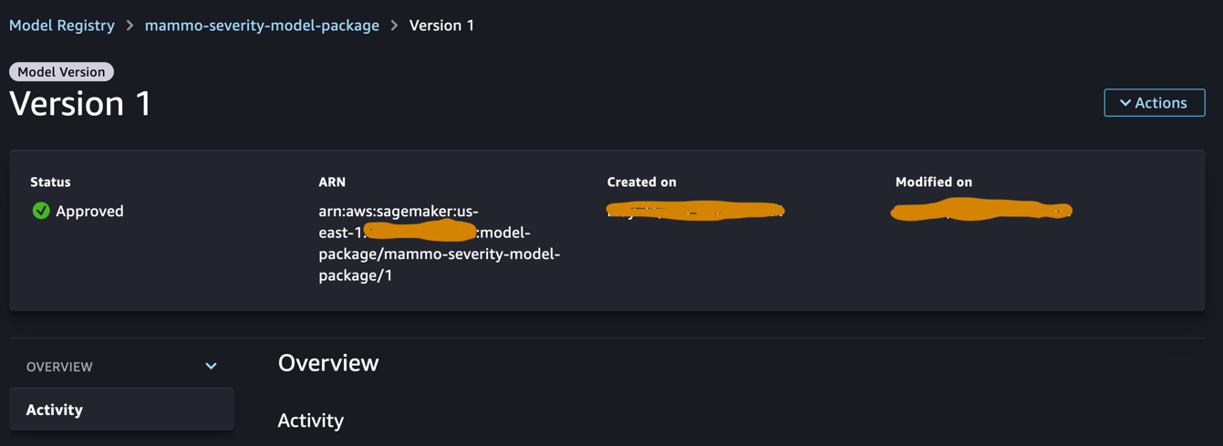 - Approve the model in SageMaker Model Registry in the central model registry account.