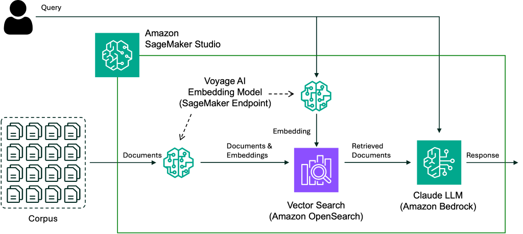 RAG architecture with Voyage AI embedding models on Amazon SageMaker JumpStart and Anthropic Claude 3 models