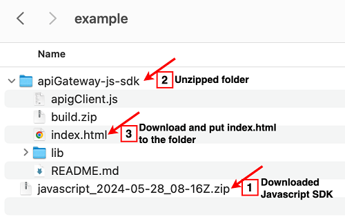 apiGateway-js-sdk. - Download the frontend UI index.html file and place it in the unzipped folder.