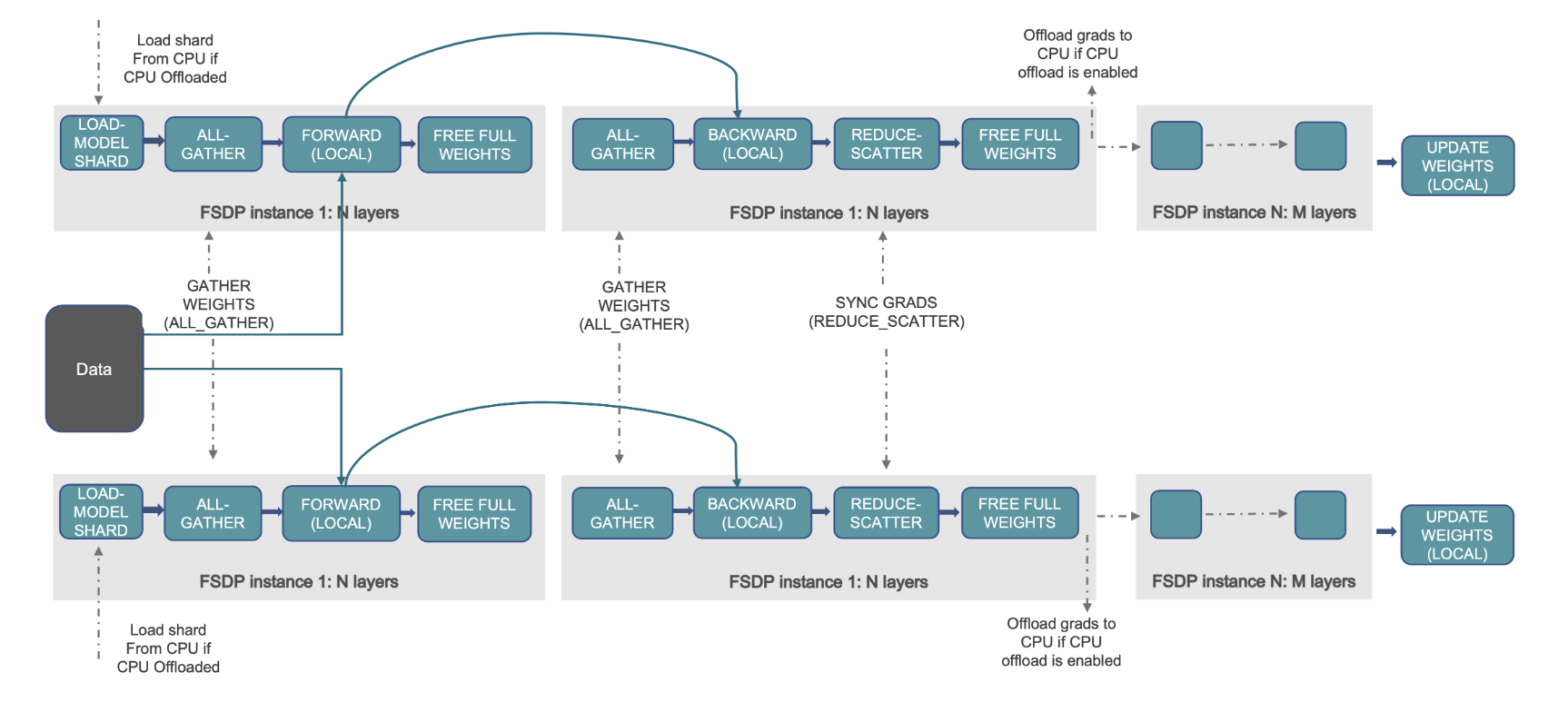 - FULL_SHARD – Shard model parameters, gradients, and optimizer states