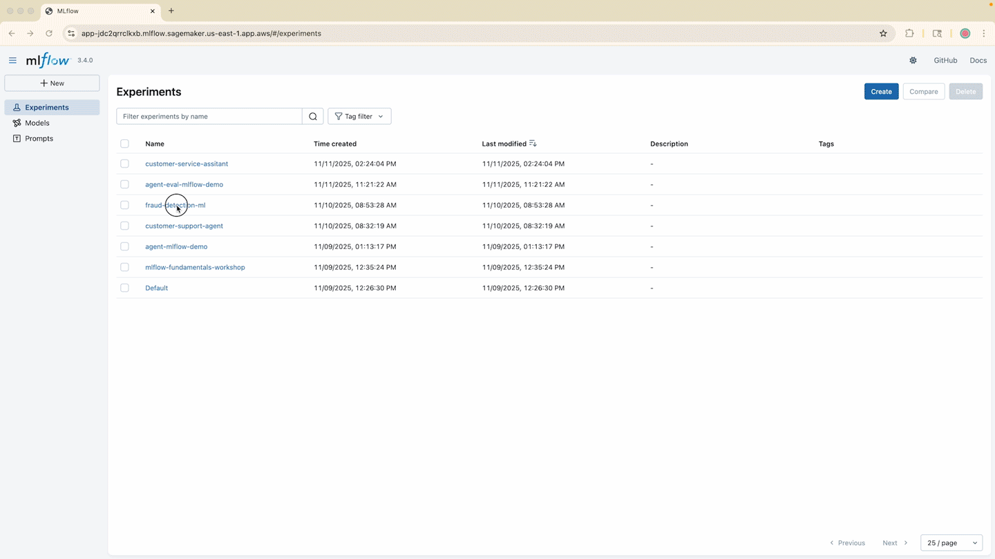We’ve simplified access control and IAM permissions for ML teams with the new MLflow App. A streamlined permissions set, such as sagemaker:CallMlflowAppApi, now covers common MLflow operations—from creating and searching experiments to updating trace information—making access control more straightforward to enforce.