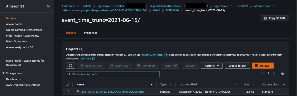 You can verify that the records have been ingested successfully by running a query against the offline feature store. You can also navigate to the S3 location and see the new folder structure.