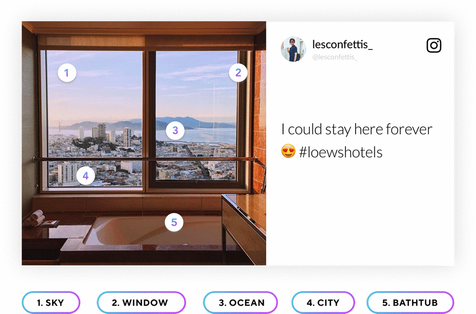 “It was a huge search to find the right images for each communication, and many people were involved when it came to pinpointing the perfect guest photo for a hotel ad or a brand ad,” says Piper Stevens, Loews senior director of Brand Loyalty and Marketing Communications. Using the advanced moderation feature and content filters, Loews is able to narrow down searches to find that 0.1% of high quality content, without having to scroll through hundreds of pages of posts. Leveraging the targeting functionality, Loews is able to curate guest images that have a distinctive look and feel that corresponds to a destination, such as filling the lobby screens in Miami with iconic South Beach imagery, and billboards in Hollywood with pictures of poolside visitors enjoying the LA summers.