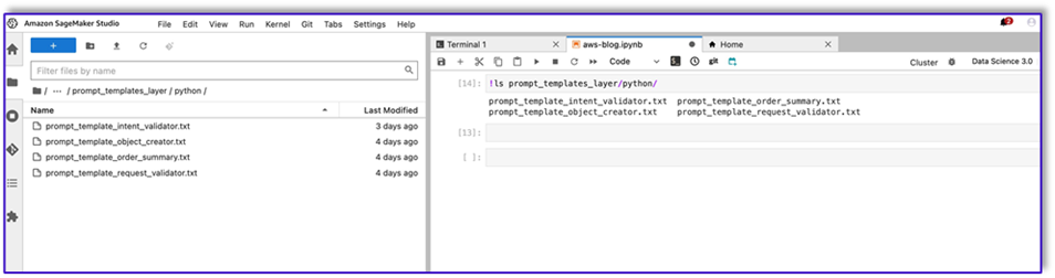 To create our prompt template for this use case, we use Amazon Bedrock. You can access Amazon Bedrock from the AWS Management Console and via API invocations. In our case, we access Amazon Bedrock via API from the convenience of a SageMaker Studio notebook to create not only our prompt template, but our complete API invocation code that we can later use on our Lambda function.
