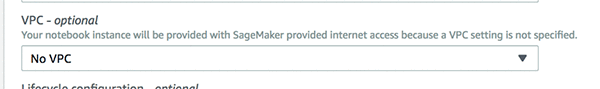 IMPORTANT NOTE: Direct internet access means that the Amazon SageMaker service is providing a network interface that allows for the notebook to talk to the internet through a NAT interface in a VPC managed by the service.