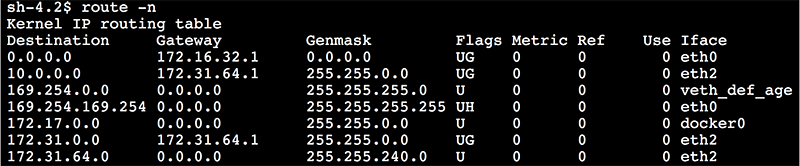For simplicity, we’ll focus on the eth0 and eth2 configurations and not the other Docker/ec2 metadata entries. This shows us the following configuration: